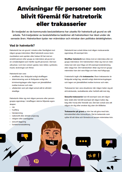 Anvisningar till kommunala politiker om hatretorik och trakasserier som publicerats som en del av Fakta mot hat -projektet.