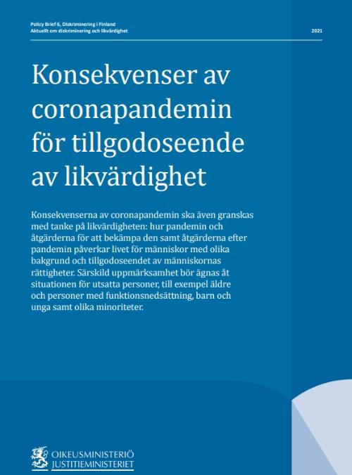 Policyrekommendationen hör till Diskriminering i Finland -serien där forskning i frågor som gäller diskriminering och likabehandling samlats ihop.